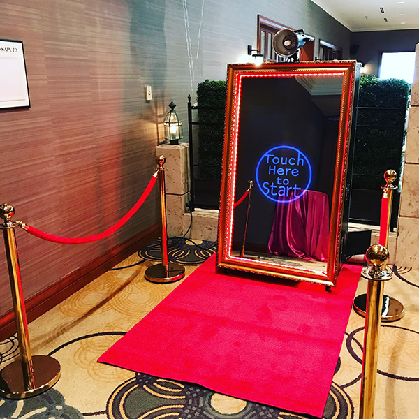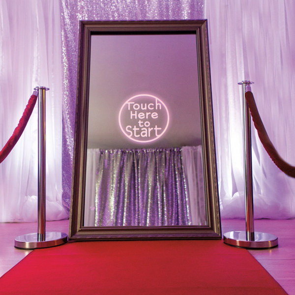 The AD Magic Mirror Photobooth really is the turnkey accessory you need. Our motto is to give you the best-personalized service. For that matter, a technician will be on site throughout the event to ensure proper operation. This one will also take care of the installation of the giant magic mirror, the lighting, the red carpet and the crowd control poles. Ultra-glamorous elements that will make your guests feel like stars. All you will have to do is enjoy the event and your guests. Contact us to learn more about our different packages!